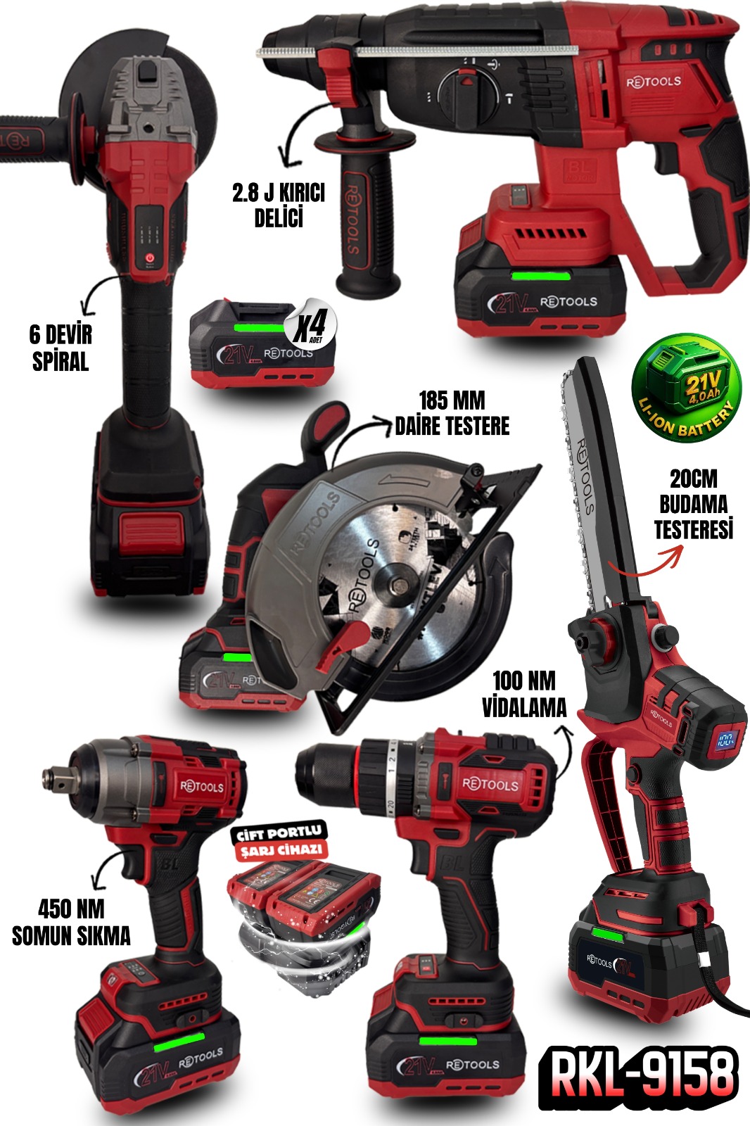 Ev tadilatından profesyonel şantiye işlerine kadar tüm ihtiyaçlarınızı tek set ile karşılayan RETOOLS RKL-9158, yüksek güç ve pratik kullanım sunar.